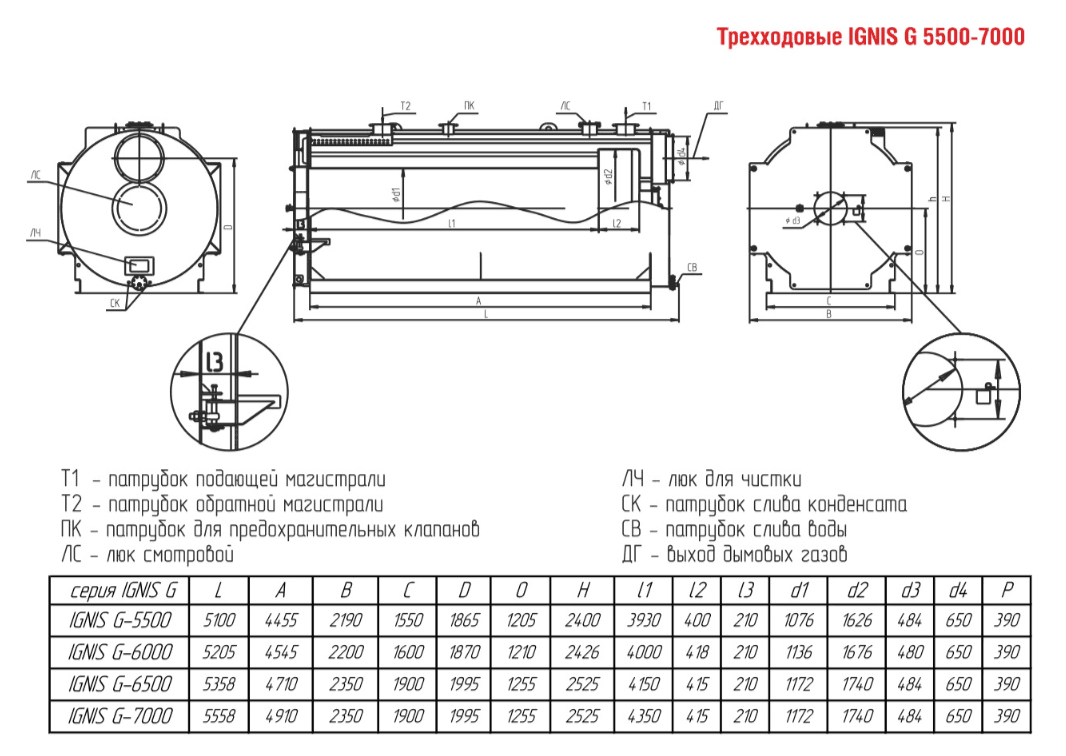 Технические характеристики водогрейного трёхходового котла ARCUS IGNIS G-7000