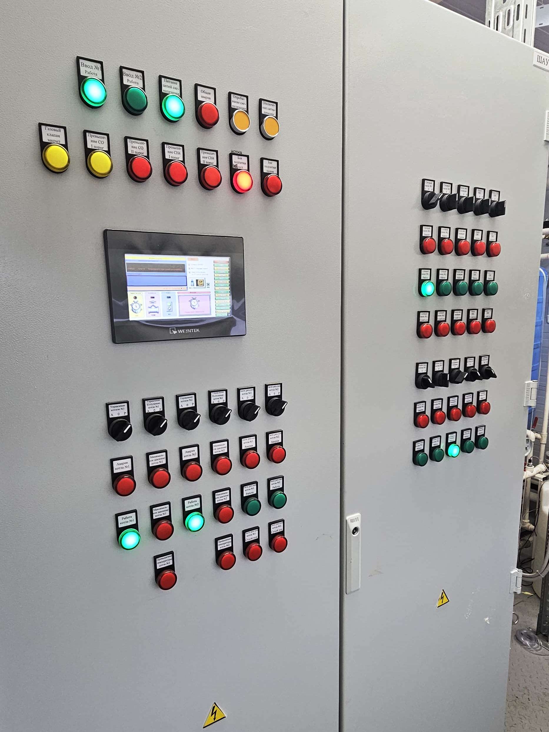 В завершение проверяем работу системы в ручном и автоматическом режимах, автоматическое переключение котельной на резервные насосы/котлы, переход на резервное питание.